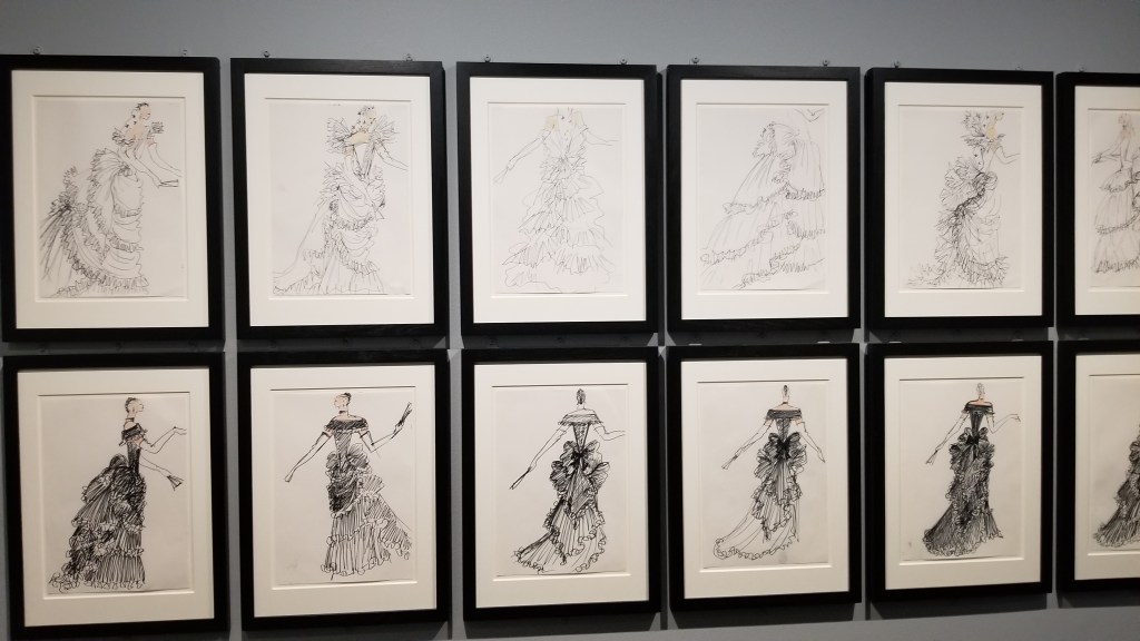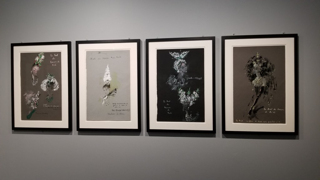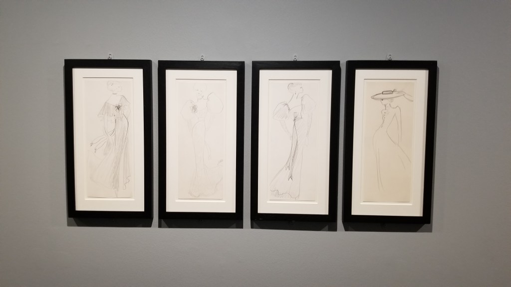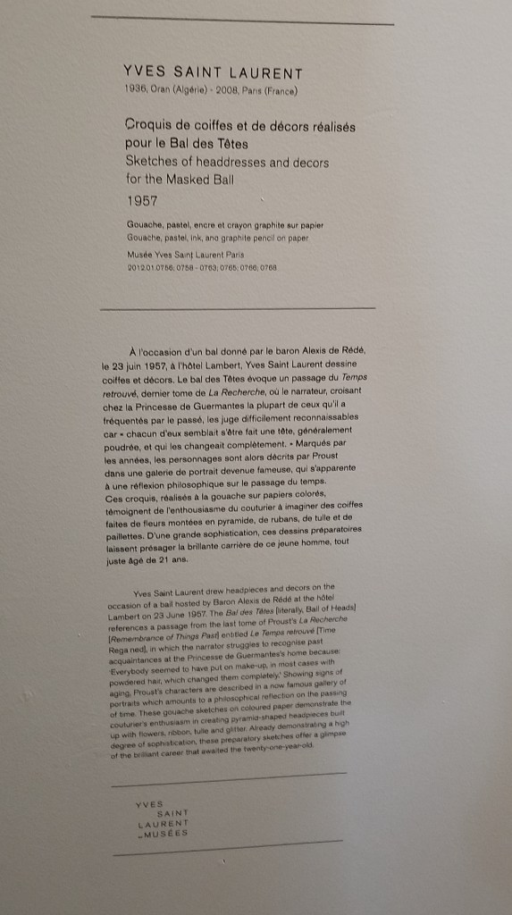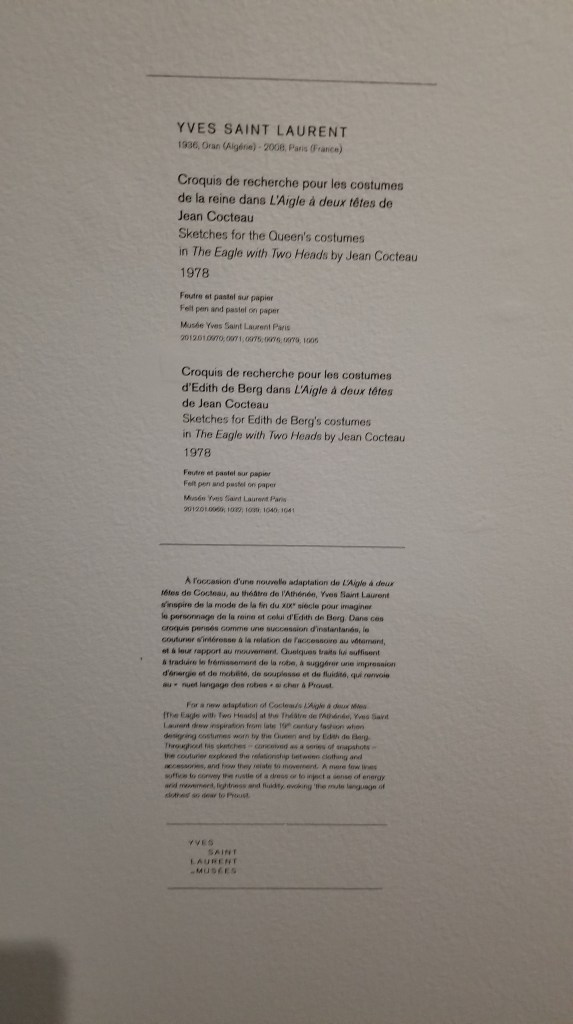In addition to evening dresses and attire, Musée D’Orsay exhibited a number of YSL sketches. He was a prolific sketcher and often used these sketches as his primary design tool. YSL heaving influenced the fashion world with his unique interpretation of the female form and the clothes that would accentuate her femininity in new ways.