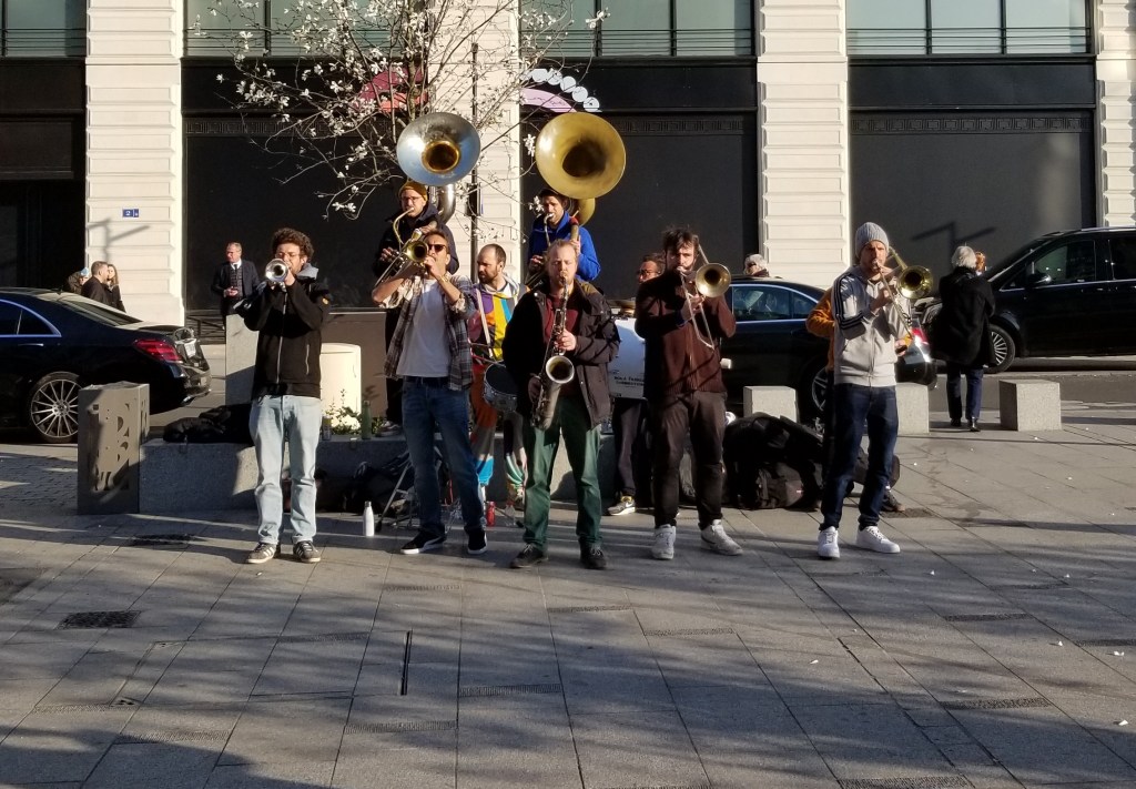 NOLA French Connection Band: While walking to a store, I came across a live band outdoor called the NOLA French Connection (https://www.facebook.com/nolafrenchconnection). The band was playing up a storm on the sidewalk to a lively crowd of on-lookers. The band was fun and upbeat with a New Orleans brass feel to them. Check ’em out. The joys of coming upon new and exciting experiences unexpectedly.