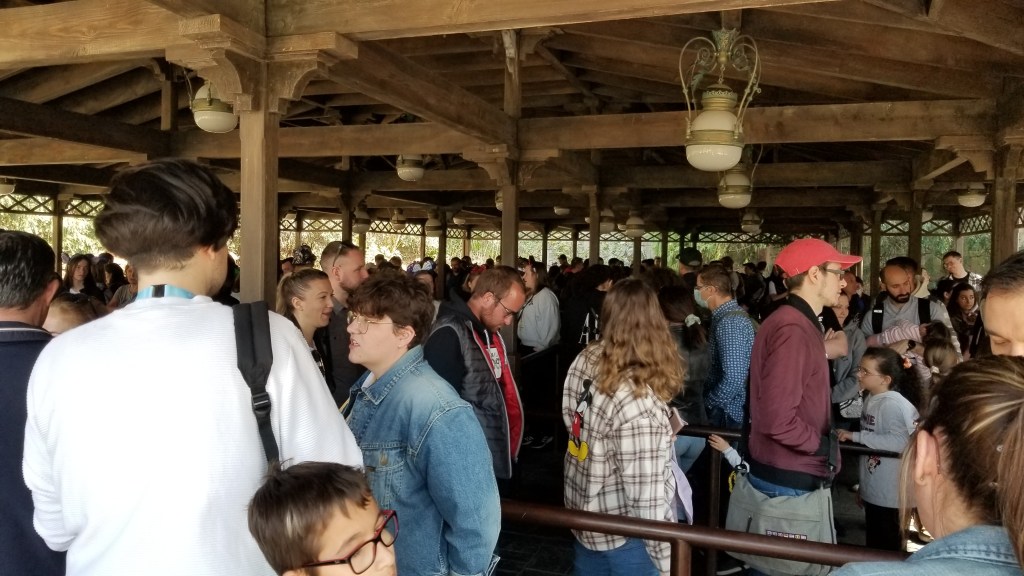 Post-COVID at Disneyland Paris: Now that France has lifted just about all of the COVID restrictions, life in the city and at Disneyland is beginning to return to normal. Here’s a picture of the line at Phantom Manor. Up until recently, there were plastic barriers between the lines to reduce the spread of COVID while in line. Now the plastic barriers are gone. I did not realize how claustrophobic the lines felt with tall plastic barriers everywhere. The lines now feel much more open. It’s wonderful to see everybody’s faces again. It’s been a long time since people out in public were as sociable as before COVID.